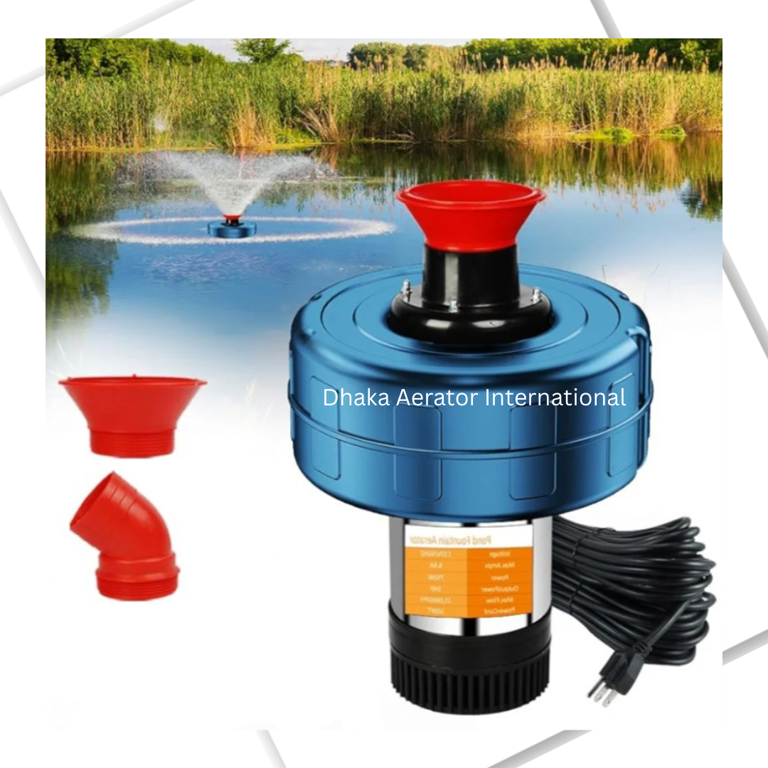 ১ I ওয়াটার জেট এয়ারেটর মেশিনটি উপরের স্তরে পানিকে ঝর্নার মত ছিটিয়ে অক্সিজেন উৎপাদন করে।