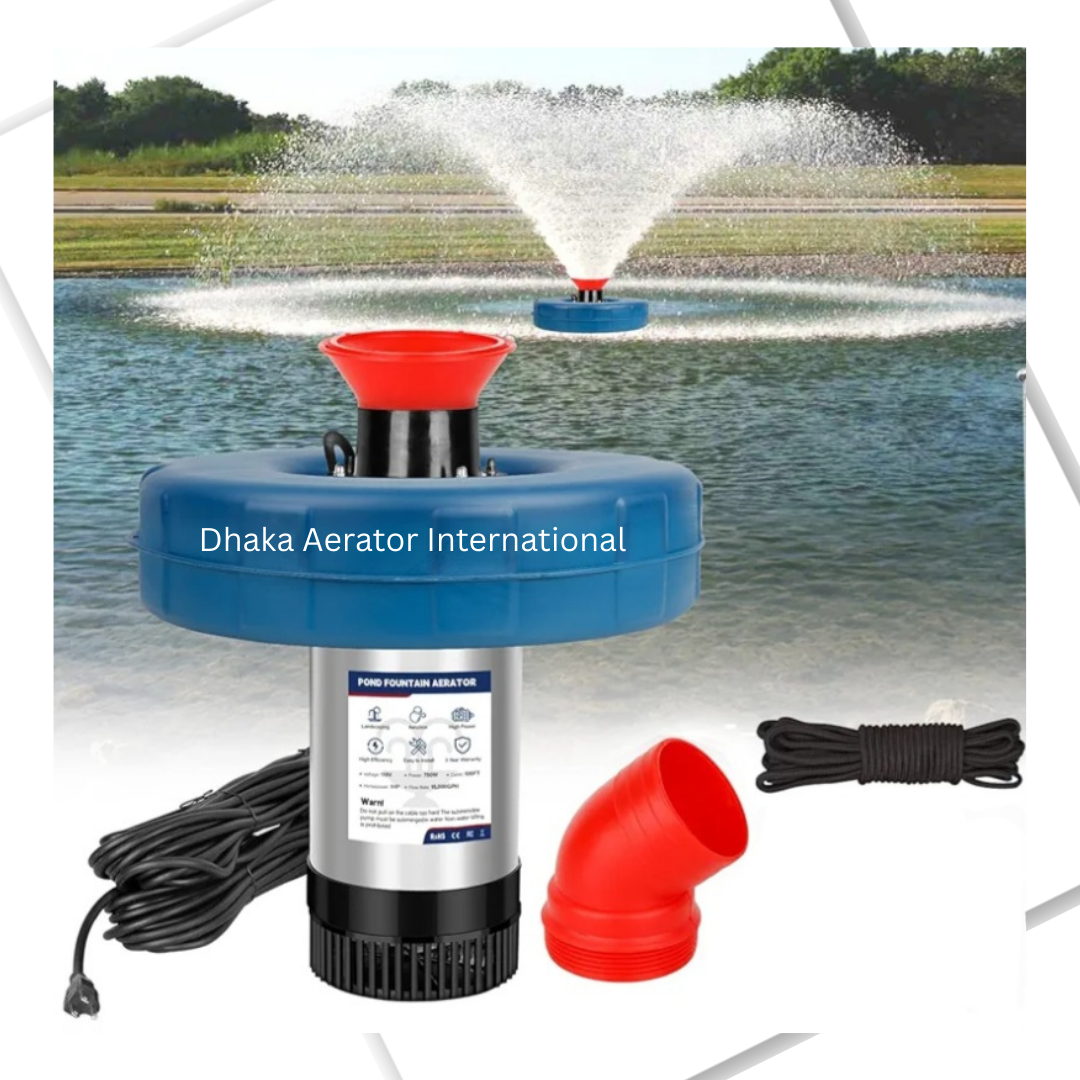 ১ I ওয়াটার জেট এয়ারেটর মেশিনটি উপরের স্তরে পানিকে ঝর্নার মত ছিটিয়ে অক্সিজেন উৎপাদন করে।