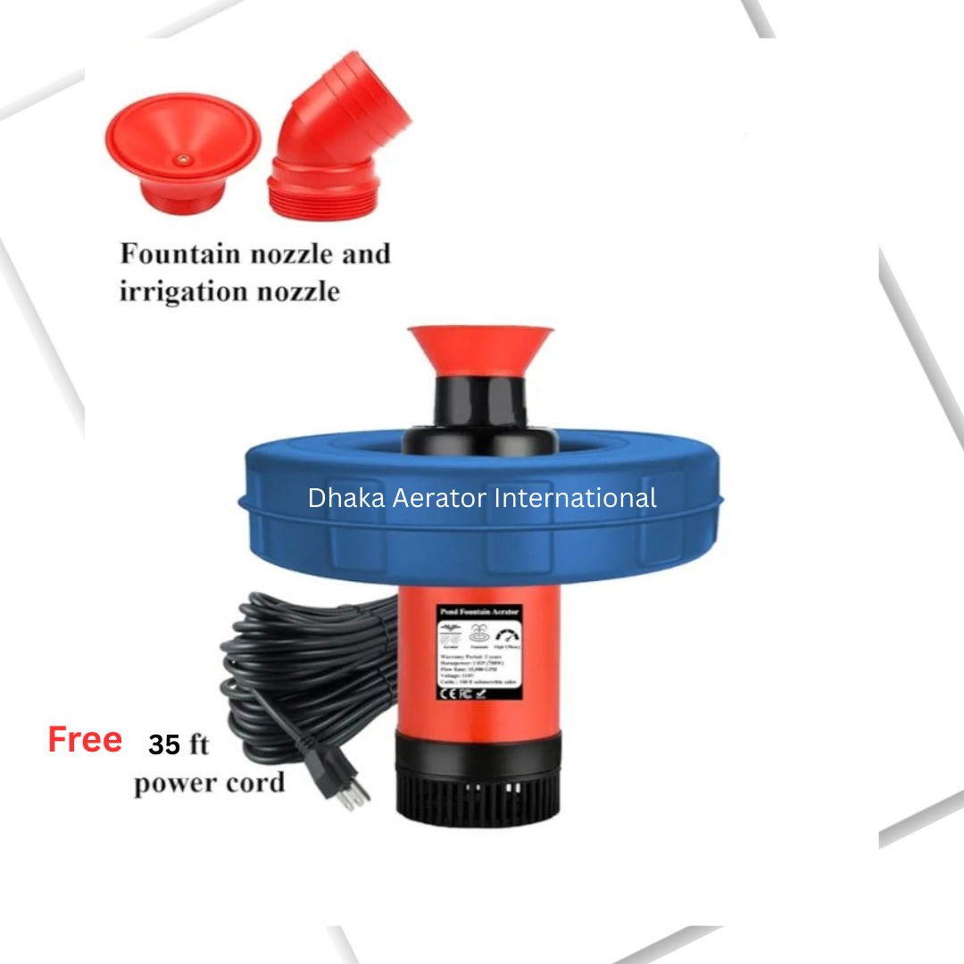 ১ I ওয়াটার জেট এয়ারেটর মেশিনটি উপরের স্তরে পানিকে ঝর্নার মত ছিটিয়ে অক্সিজেন উৎপাদন করে।
